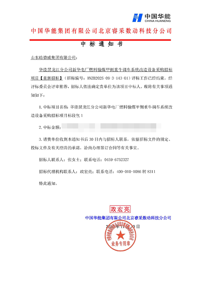 | 恭喜公司中标华能黑龙… |